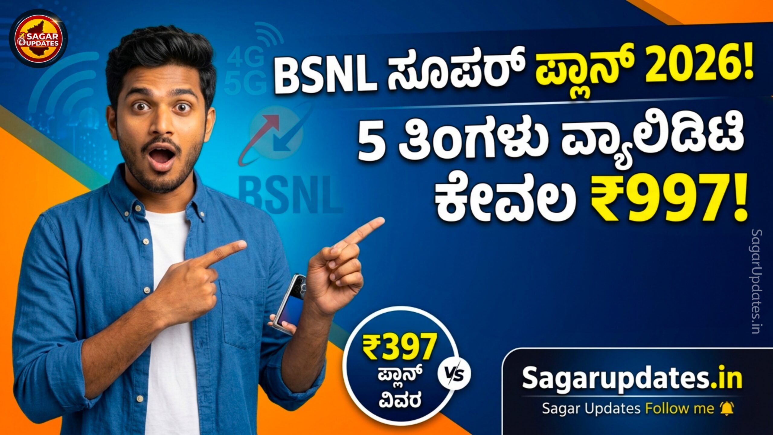 ​ಇಂದಿನ ಡಿಜಿಟಲ್ ಯುಗದಲ್ಲಿ ಸ್ಮಾರ್ಟ್‌ಫೋನ್ ಎನ್ನುವುದು ನಮ್ಮ ಜೀವನದ ಅವಿಭಾಜ್ಯ ಅಂಗವಾಗಿದೆ. ಅದೇ ರೀತಿ ಇಂಟರ್ನೆಟ್ ಡೇಟಾ ಮತ್ತು ಕಾಲಿಂಗ್ ಅವಶ್ಯಕತೆಗಳು ದಿನದಿಂದ ದಿನಕ್ಕೆ ಹೆಚ್ಚಾಗುತ್ತಲೇ ಇವೆ. ಖಾಸಗಿ ಟೆಲಿಕಾಂ ಕಂಪನಿಗಳಾದ ಜಿಯೋ (Jio), ಏರ್‌ಟೆಲ್ (Airtel) ಮತ್ತು ವಿಐ (Vi) ತಮ್ಮ ರೀಚಾರ್ಜ್ ಪ್ಲಾನ್‌ಗಳ ಬೆಲೆಯನ್ನು ಪದೇ ಪದೇ ಹೆಚ್ಚಿಸುತ್ತಿರುವುದರಿಂದ, ಸಾಮಾನ್ಯ ಜನರಿಗೆ ಪ್ರತಿ ತಿಂಗಳು ಮೊಬೈಲ್ ರೀಚಾರ್ಜ್ ಮಾಡುವುದು ದೊಡ್ಡ ಹೊರೆಯಾಗಿ ಪರಿಣಮಿಸಿದೆ. ಈ ಒಂದು ಹಿನ್ನೆಲೆಯಲ್ಲಿ, ಸರ್ಕಾರಿ ಸ್ವಾಮ್ಯದ ಭಾರತ್ ಸಂಚಾರ್ ನಿಗಮ್ ಲಿಮಿಟೆಡ್ (BSNL) ತನ್ನ ಗ್ರಾಹಕರಿಗೆ ಭರ್ಜರಿ ಸಿಹಿಸುದ್ದಿ ನೀಡಿದ್ದು, ಭರ್ಜರಿ ‘BSNL Super Plan 2026’ ಅನ್ನು ಮಾರುಕಟ್ಟೆಗೆ ಬಿಡುಗಡೆ ಮಾಡಿದೆ.