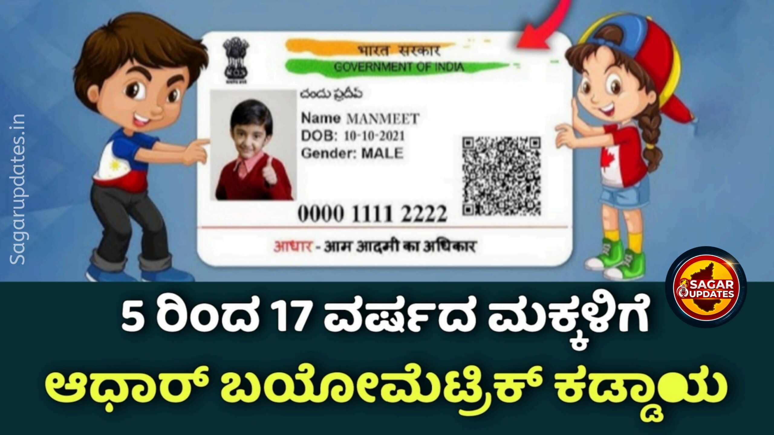 ​ಹೌದು, ಭಾರತೀಯ ವಿಶಿಷ್ಟ ಗುರುತಿನ ಪ್ರಾಧಿಕಾರ (UIDAI) ಹೊರಡಿಸಿರುವ ಹೊಸ ಮಾರ್ಗಸೂಚಿಗಳ ಪ್ರಕಾರ, 5 ರಿಂದ 17 ವರ್ಷದೊಳಗಿನ ಮಕ್ಕಳಿಗೆ ಆಧಾರ್ ಬಯೋಮೆಟ್ರಿಕ್ ಅಪ್‌ಡೇಟ್ ಮಾಡುವುದು ಕಡ್ಡಾಯವಾಗಿದೆ. ಈ ಪ್ರಕ್ರಿಯೆಯನ್ನು ನಿರ್ಲಕ್ಷಿಸಿದರೆ, ನಿಮ್ಮ ಮಕ್ಕಳಿಗೆ ಭವಿಷ್ಯದಲ್ಲಿ ತೊಂದರೆಗಳಾಗಬಹುದು. ಈ ಲೇಖನದಲ್ಲಿ, ಈ ಅಪ್‌ಡೇಟ್ ಏಕೆ ಮುಖ್ಯ, ಯಾರು ಮಾಡಿಸಬೇಕು, ಎಲ್ಲಿ ಮಾಡಿಸಬೇಕು ಮತ್ತು ಯಾವ ದಾಖಲೆಗಳು ಅಗತ್ಯ ಎಂಬುದರ ಕುರಿತು ಸಂಪೂರ್ಣ ಮಾಹಿತಿಯನ್ನು ಸಾಗರ್ ಅಪ್ಡೇಟ್ಸ್ (Sagar Updates) ನಿಮಗೆ ನೀಡುತ್ತದೆ.