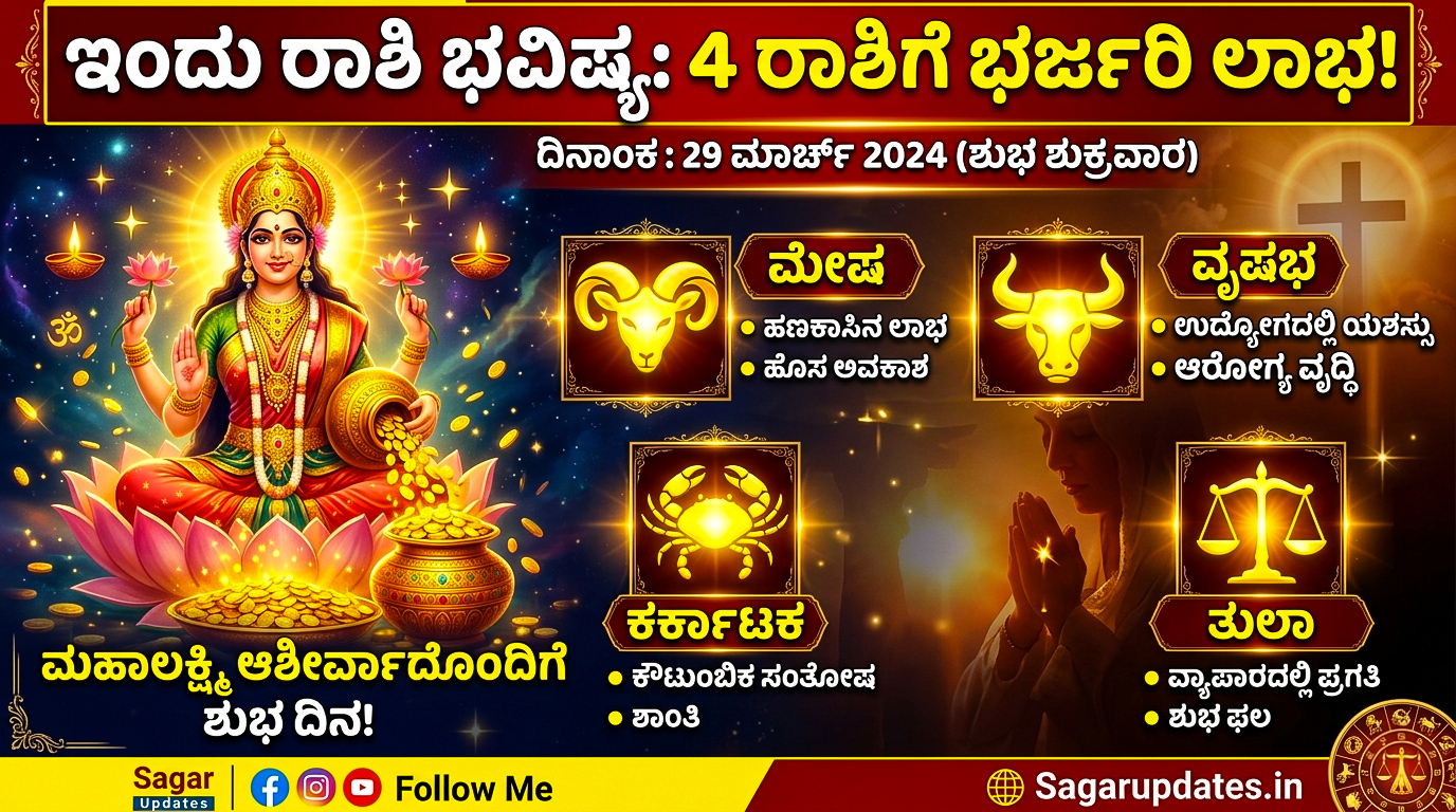 ​ದೈನಂದಿನ ಜ್ಯೋತಿಷ್ಯ, ಟ್ರೆಂಡಿಂಗ್ ಸುದ್ದಿಗಳು ಮತ್ತು ಉಪಯುಕ್ತ ಮಾಹಿತಿಗಳಿಗಾಗಿ Sagar Updates Follow me. ನಮ್ಮ ವೆಬ್‌ಸೈಟ್ Sagarupdates.in ಗೆ ಭೇಟಿ ನೀಡುತ್ತಿರಿ.