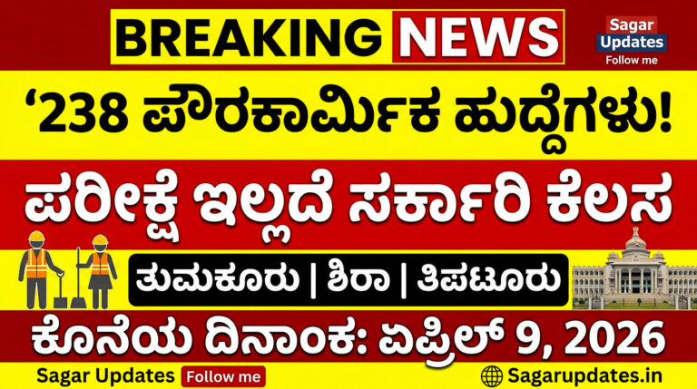 ತುಮಕೂರು ಜಿಲ್ಲೆಯಲ್ಲಿ ಬಂಪರ್ ಉದ್ಯೋಗಾವಕಾಶ: ಯಾವುದೇ ಪರೀಕ್ಷೆಯಿಲ್ಲದೆ 238 ಪೌರಕಾರ್ಮಿಕ ಹುದ್ದೆಗಳಿಗೆ ನೇರ ನೇಮಕಾತಿ! ಇಂದೇ ಅರ್ಜಿ ಸಲ್ಲಿಸಿ