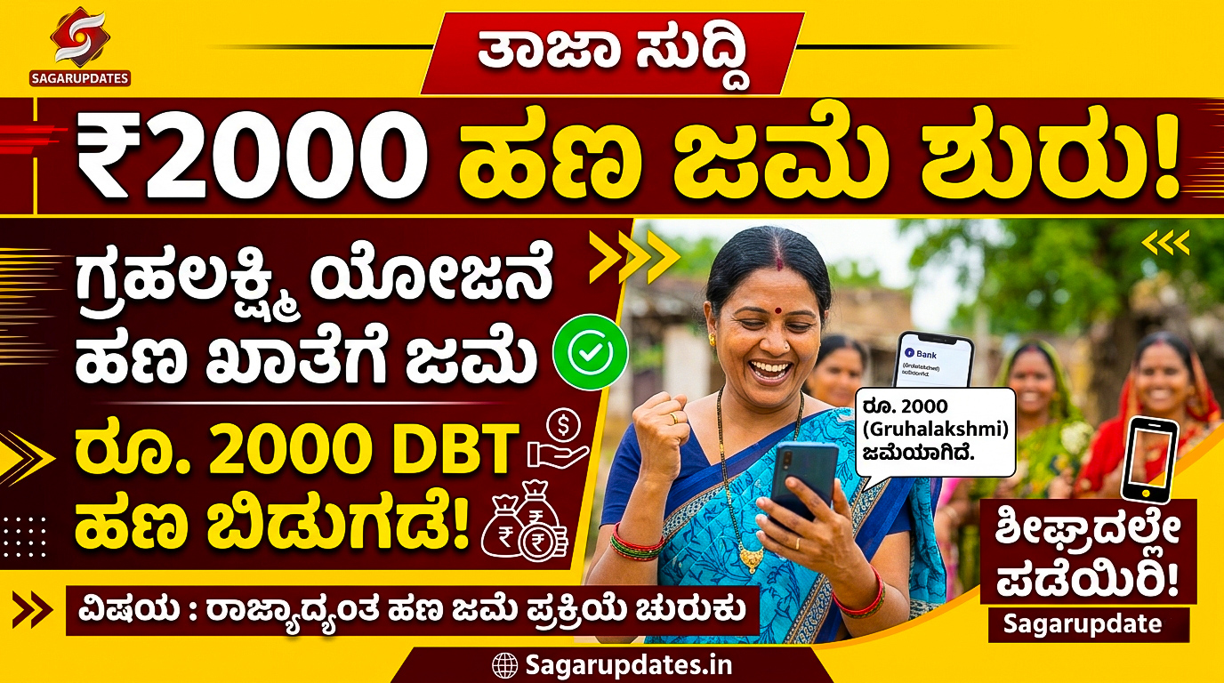 ​ಏಪ್ರಿಲ್ 7, 2026 ರಂದು ರಾಜ್ಯದ ಅನೇಕ ಫಲಾನುಭವಿಗಳ ಬ್ಯಾಂಕ್ ಖಾತೆಗೆ ₹2,000 ಡಿಬಿಟಿ (DBT) ಮೂಲಕ ನೇರವಾಗಿ ಜಮೆಯಾಗಿದ್ದು, ಬಾಕಿ ಹಣದ ನಿರೀಕ್ಷೆಯಲ್ಲಿದ್ದ ಲಕ್ಷಾಂತರ ಮಹಿಳೆಯರ ಮುಖದಲ್ಲಿ ಮಂದಹಾಸ ಮೂಡಿಸಿದೆ. ಈ ಕುರಿತಾದ ಸಂಪೂರ್ಣ ಮಾಹಿತಿ, ನಿಮ್ಮ ಖಾತೆಗೆ ಹಣ ಬಂದಿದೆಯೇ ಎಂದು ಚೆಕ್ ಮಾಡುವುದು ಹೇಗೆ (How to check Gruhalakshmi status) ಮತ್ತು ಹಣ ಬಾರದಿದ್ದರೆ ಏನು ಮಾಡಬೇಕು ಎಂಬ ವಿವರಗಳನ್ನು Sagarupdates.in ನ ಈ ಲೇಖನದಲ್ಲಿ ಎಳೆಎಳೆಯಾಗಿ ಬಿಚ್ಚಿಡಲಾಗಿದೆ.