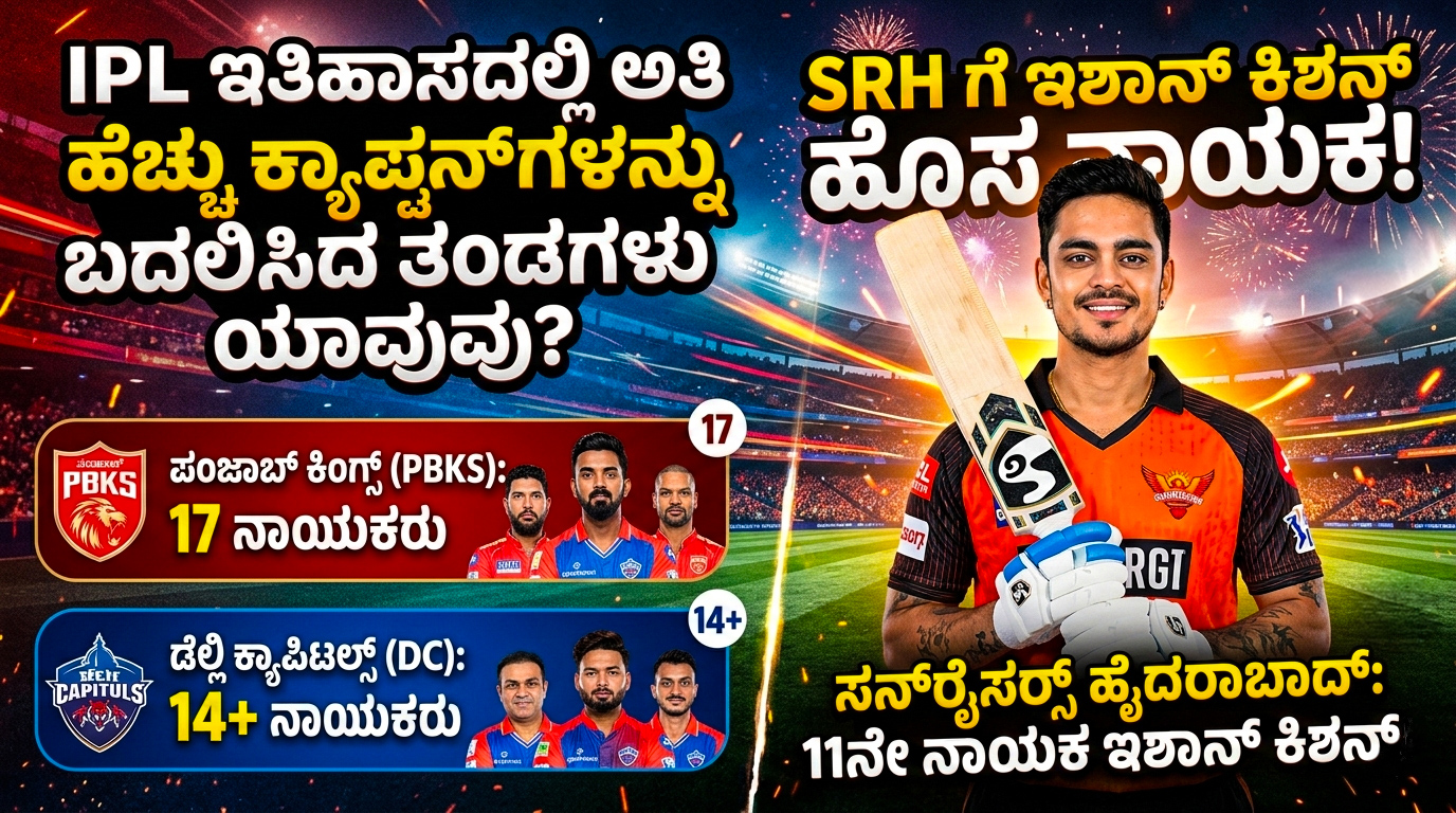 🏏 IPL 2026: ಐಪಿಎಲ್ ಇತಿಹಾಸದಲ್ಲಿ ಅತಿ ಹೆಚ್ಚು ನಾಯಕ ಬದಲಿಸಿದ ತಂಡಗಳು ಯಾವವು?