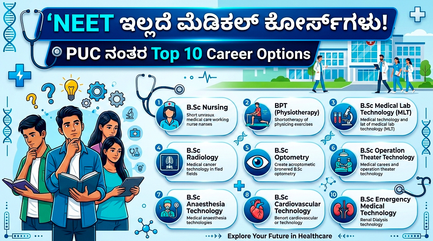 🎯 ದ್ವಿತೀಯ ಪಿಯುಸಿ ನಂತರ NEET ಇಲ್ಲದೇ ಮೆಡಿಕಲ್ ಕ್ಷೇತ್ರದಲ್ಲಿ ಭವಿಷ್ಯ ಕಟ್ಟಿಕೊಳ್ಳಿ!