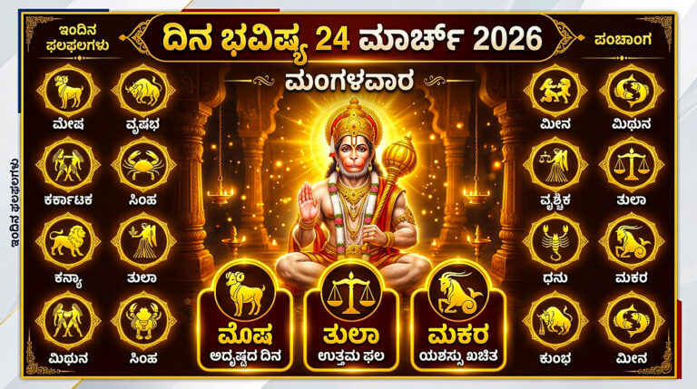 ದಿನ ಭವಿಷ್ಯ 24 ಮಾರ್ಚ್ 2026: ಮಂಗಳವಮಂಗಳವಾರ ಈ 3 ರಾಶಿಗಳಿಗೆ ಆಂಜನೇಯನ ಕೃಪೆ – ಕೆಲಸದಲ್ಲಿ ಸಕ್ಸಸ್, ಧನ ಲಾಭ ಖಚಿತ!