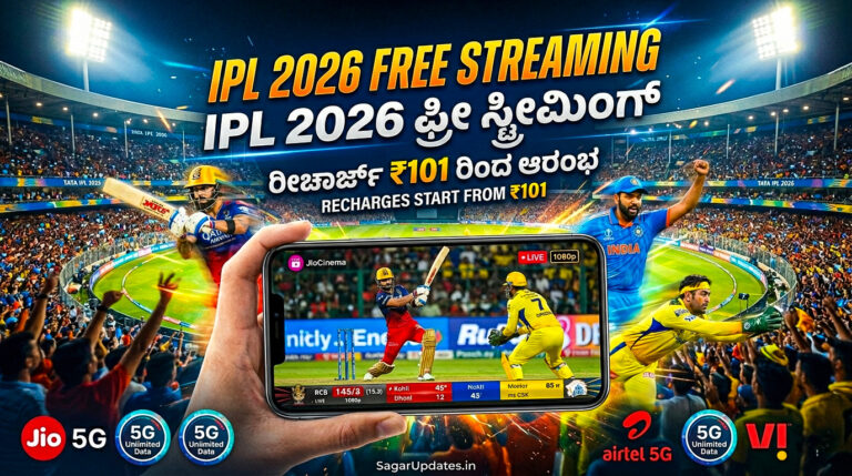 ಐಪಿಎಲ್ 2026 ಫ್ರೀ ಸ್ಟ್ರೀಮಿಂಗ್ ಧಮಾಕಾ: ಕೇವಲ ₹101 ರಿಂದ ಜಿಯೋ, ಏರ್ಟೆಲ್ ಹೊಸ ಪ್ಲಾನ್ಗಳು! ಡೇಟಾ ಖಾಲಿಯಾಗುವ ಟೆನ್ಷನ್ ಇನ್ಮುಂದೆ ಇಲ್ಲ.
