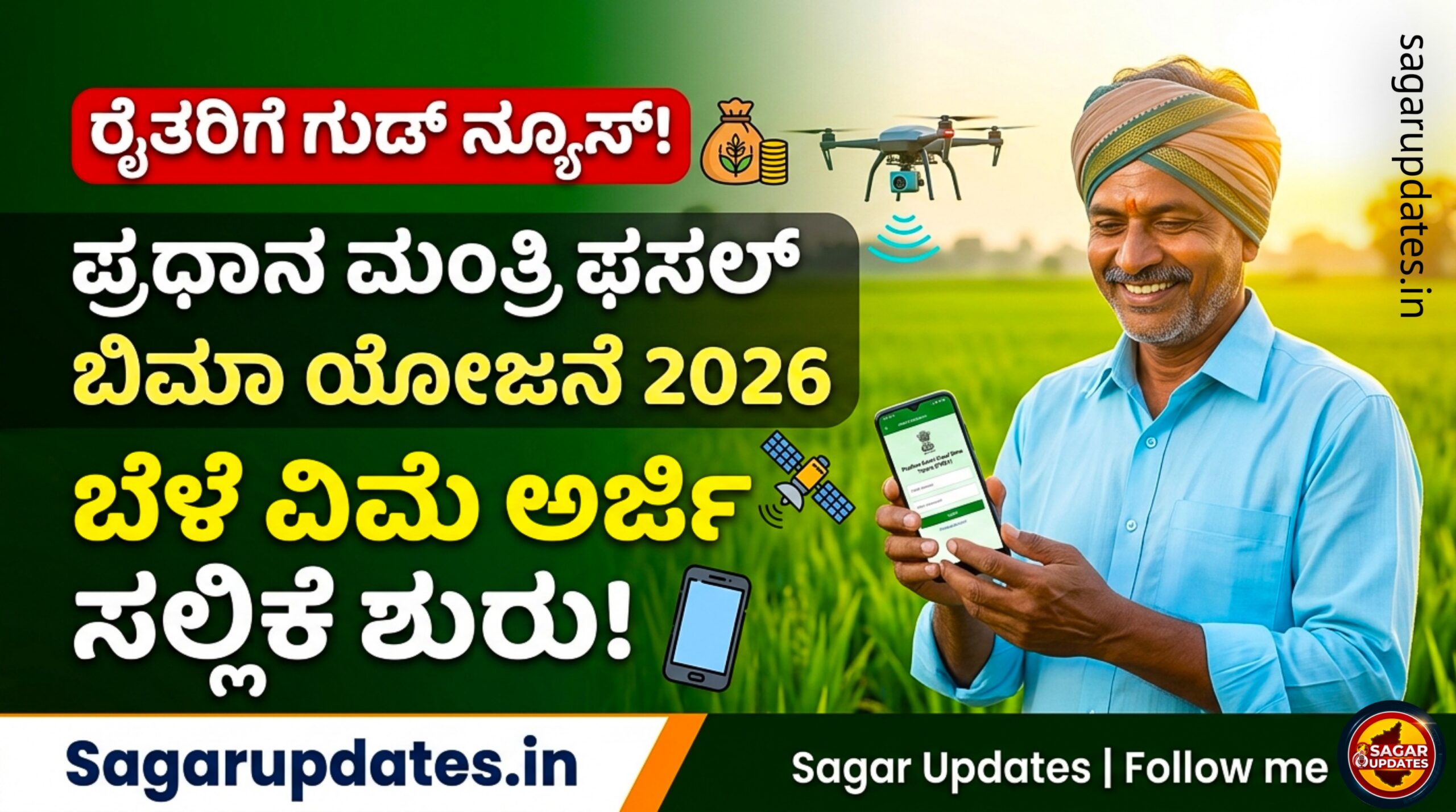 ಹೌದು, ರೈತರ ಕಷ್ಟಗಳಿಗೆ ಸ್ಪಂದಿಸಲು ಮತ್ತು ಅವರ ಬೆಳೆಗಳಿಗೆ ಆರ್ಥಿಕ ಭದ್ರತೆ ಒದಗಿಸಲು ಜಾರಿಗೆ ತಂದಿರುವ ಅತ್ಯದ್ಭುತ ಯೋಜನೆಯೇ ‘ಕರ್ನಾಟಕ ರೈತ ಸುರಕ್ಷಾ ಪ್ರಧಾನ ಮಂತ್ರಿ ಫಸಲ್ ಬಿಮಾ ಯೋಜನೆ’ (PMFBY). 2026ನೇ ಸಾಲಿನ ಬೆಳೆ ವಿಮೆ ಪ್ರಕ್ರಿಯೆಗಳು ಈಗಾಗಲೇ ಬಿರುಸುಗೊಂಡಿದ್ದು, ಇದು ರೈತರ ಪಾಲಿಗೆ ನಿಜಕ್ಕೂ ಆಪತ್ಬಾಂಧವವಾಗಿದೆ. ಮಧ್ಯವರ್ತಿಗಳ ಹಾವಳಿಯಿಲ್ಲದೆ, ಡ್ರೋನ್ ಮತ್ತು ಉಪಗ್ರಹಗಳ ಮೂಲಕ ನಿಖರ ಸಮೀಕ್ಷೆ ನಡೆಸಿ, ನಷ್ಟವಾದ ರೈತರ ಖಾತೆಗೆ ನೇರವಾಗಿ ಹಣ ಹಾಕುವ ಈ ಯೋಜನೆಗೆ ಅರ್ಜಿ ಸಲ್ಲಿಸುವುದು ಹೇಗೆ? ಬನ್ನಿ, ಸಂಪೂರ್ಣ ಮಾಹಿತಿಯನ್ನು Sagarupdates.in ಮುಖಾಂತರ ಸರಳವಾಗಿ ತಿಳಿದುಕೊಳ್ಳೋಣ.