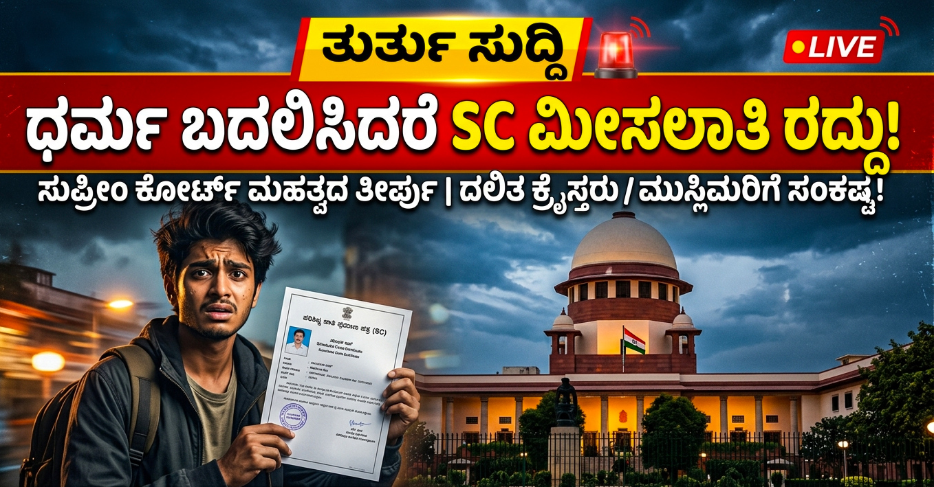 🚨 ಎಚ್ಚರಿಕೆ! ಧರ್ಮ ಬದಲಿಸಿದರೆ ನಿಮ್ಮ SC ಮೀಸಲಾತಿ ರದ್ದು – ಸುಪ್ರೀಂ ಕೋರ್ಟ್ ಮಹತ್ವದ ತೀರ್ಪು