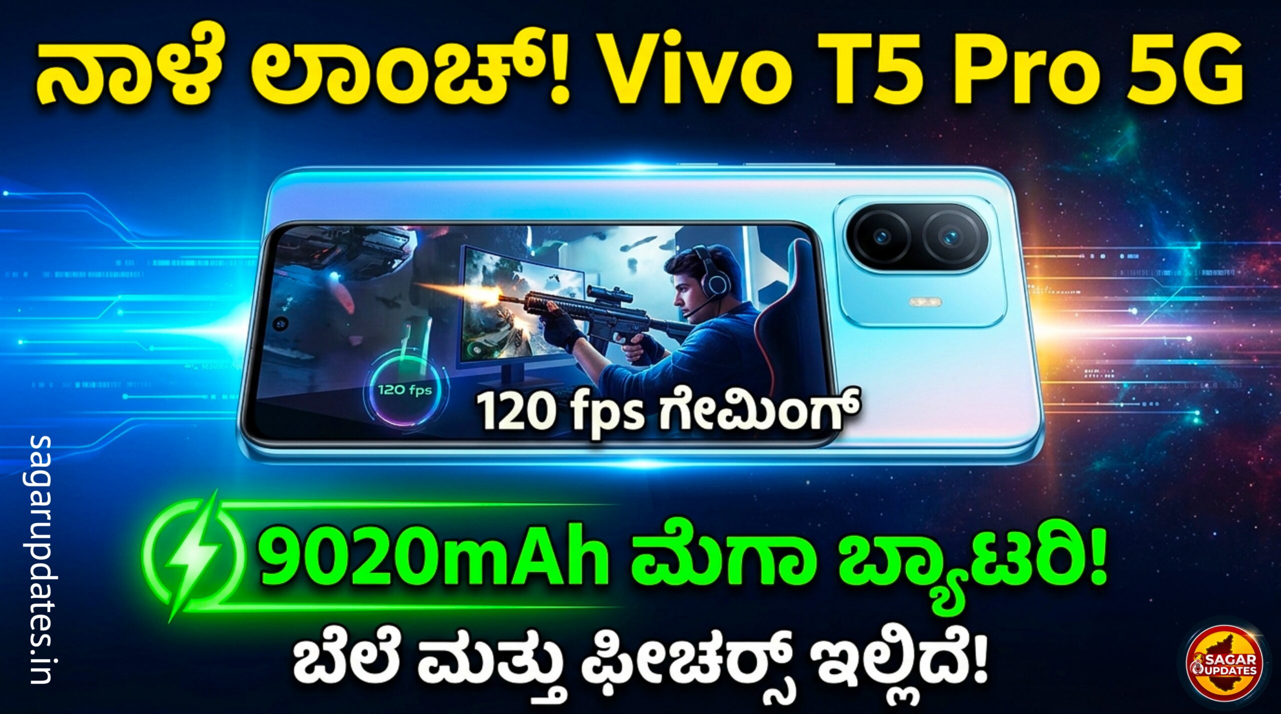 ನಾಳೆ ಮಾರುಕಟ್ಟೆಗೆ ಅಪ್ಪಳಿಸಲಿದೆ Vivo T5 Pro 5G: ಬರೋಬ್ಬರಿ 9020mAh ಬ್ಯಾಟರಿಯ ಈ ಸ್ಮಾರ್ಟ್‌ಫೋನ್ ಬೆಲೆ ಮತ್ತು ಫೀಚರ್ಸ್ ಇಲ್ಲಿದೆ! | Sagar Updates